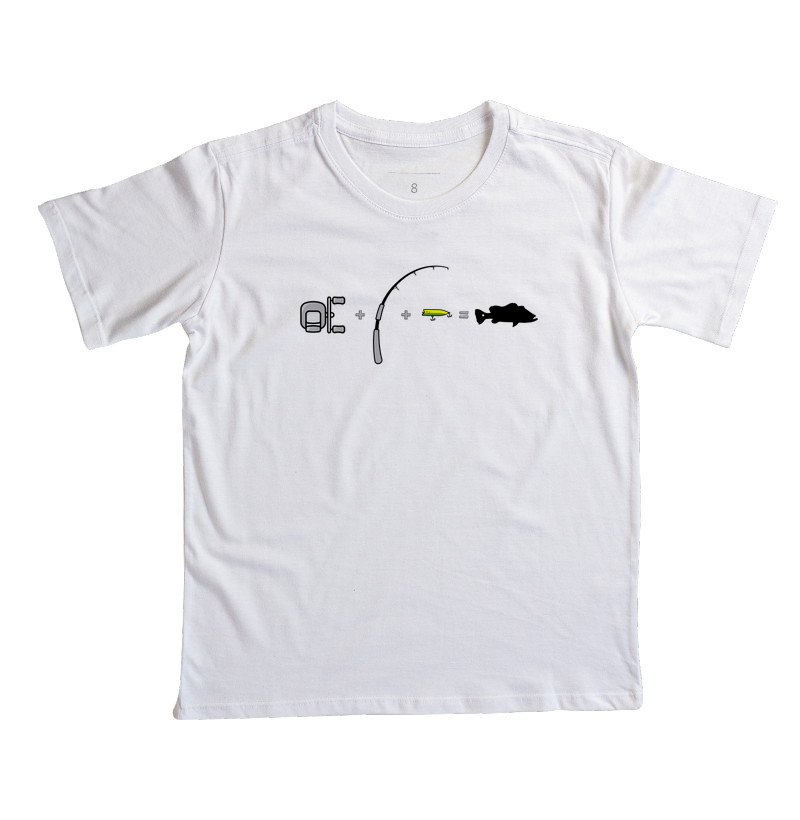 A estampa "Somatório" é uma fórmula visual simples e direta que resume a paixão pela pescaria: molinete + vara + isca = peixe! Com um design clean e simbólico, essa arte celebra o essencial do esporte, ideal para pescadores que amam cada etapa dessa experiência.